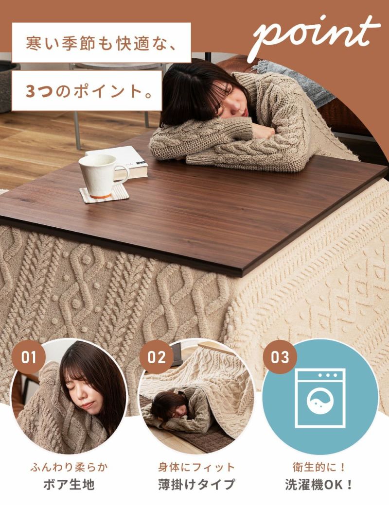 身体を包み込むようなあたたかさで、長時間こたつに入っていても快適に過ごせます。