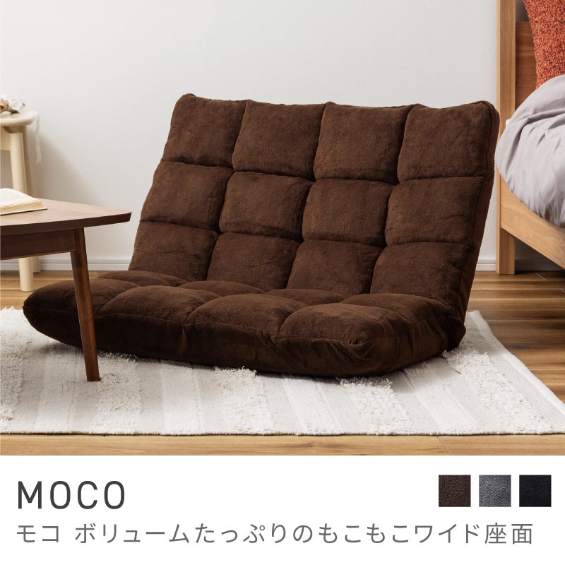 ボリュームたっぷりのもこもこ座面 座椅子 14段階 リクライニング 二人掛け ワイド ハイバック おしゃれ|MOCO