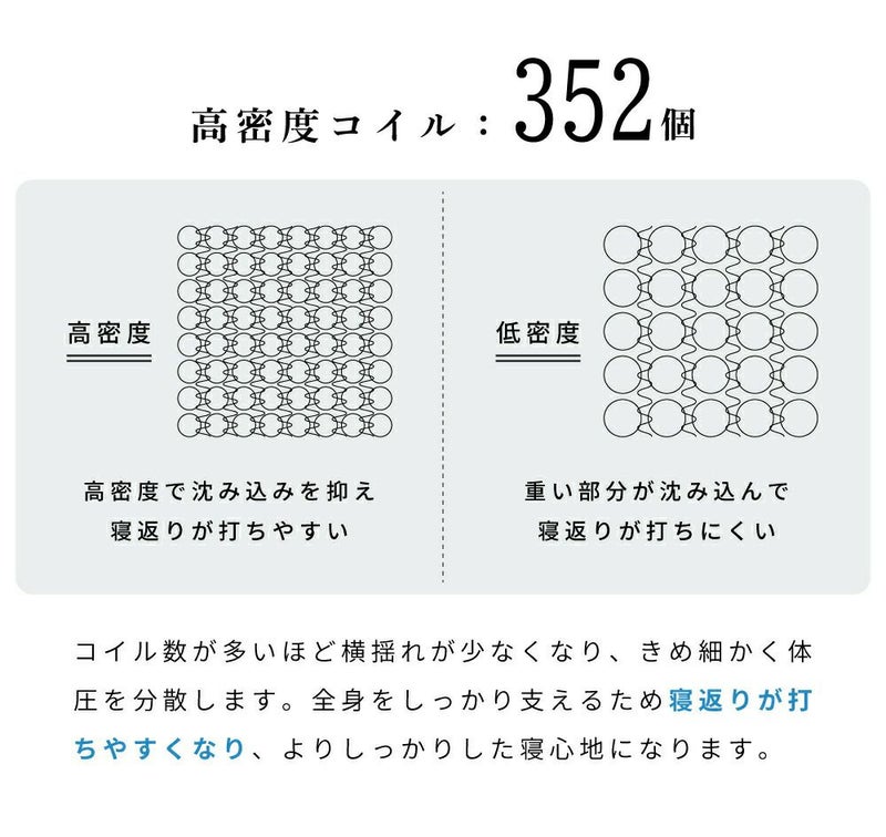 コイル数が多いほど横揺れが少なくなり、きめ細かく体圧を分散します。