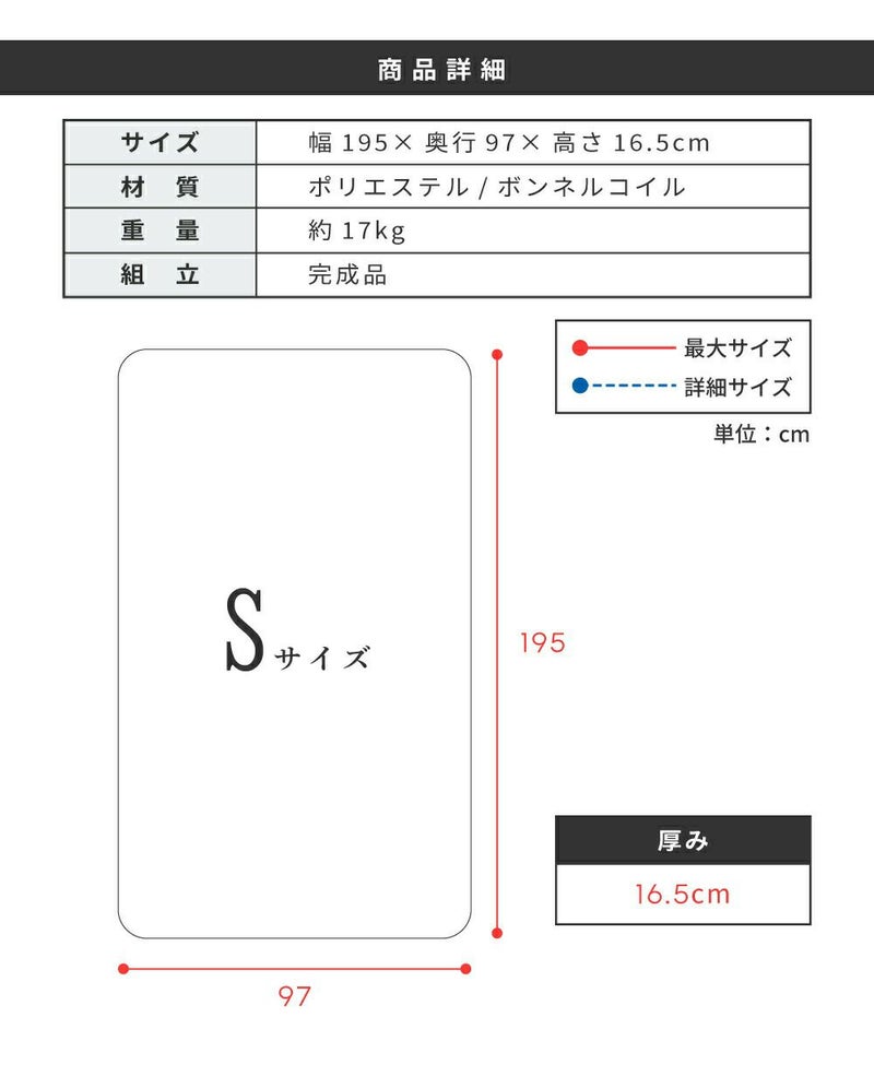 身体全体を面で支えるマットレス ボンネルコイルマットレス シングル 厚み16.5cm シンプル 快適