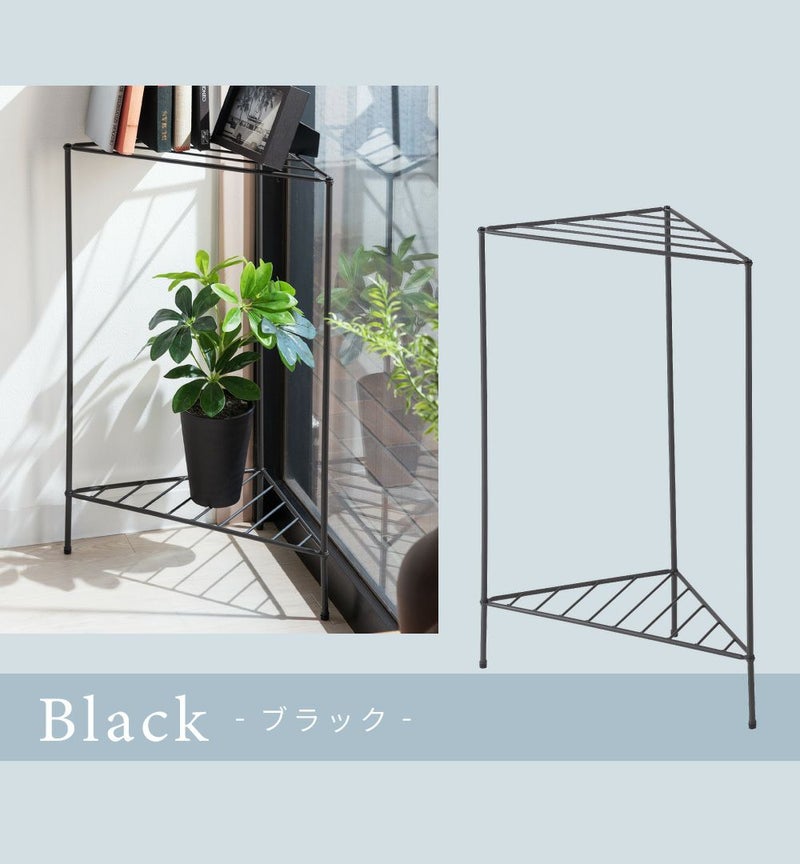 ラック 2段 スチールラック 棚 オープンラック スタイリッシュ シンプル インダストリアル 三角形 コーナー トイレ 玄関 スリム コンパクト 花台 ディスプレイ