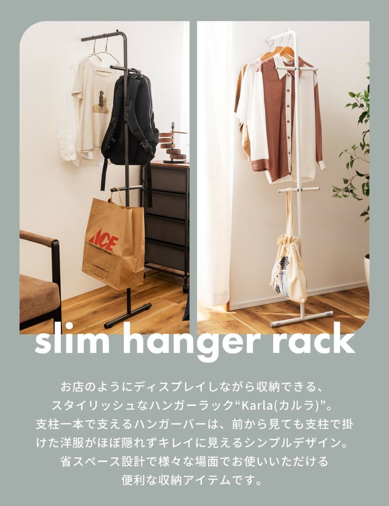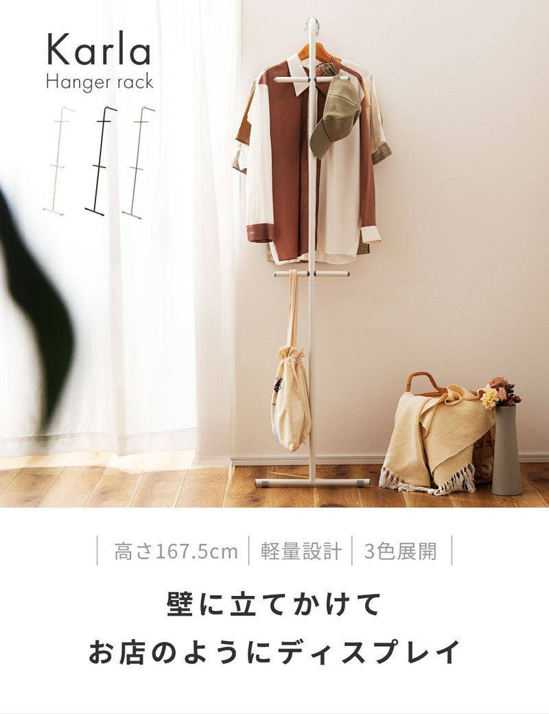 飾りながら収納できるハンガーラック ハンガーラック スリム 高さ167.5 パイプ 軽量 軽い 省スペース|KARLA