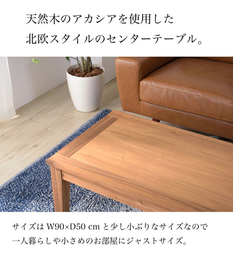ローテーブル 幅90 コーヒーテーブル センターテーブル おしゃれ 木製 天然木 シンプル 木目 しっかり 北欧 リビングテーブル 長方形 小さめ 小さい ブラウン アカシア ナチュラル