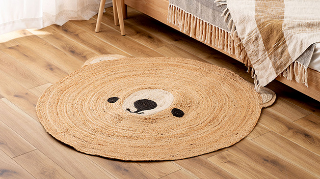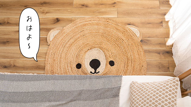 可愛らしいアニマルデザインとジュートラグの風合いを絶妙に組み合わせた特別感あるラグです。100%天然素材のジュートを使用しているので、お部屋にナチュラルなテイストを取り入れられます。