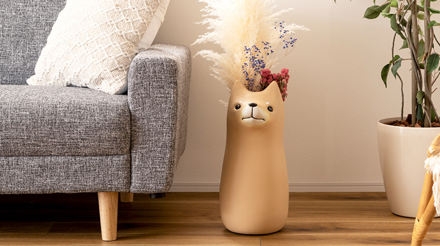 柴犬デザインが魅力的なこの傘立ては、お部屋のインテリアとしても使えます。傘だけではなくて、ドライフラワーを入れてお部屋を華やかに演出してみてもいいですね。