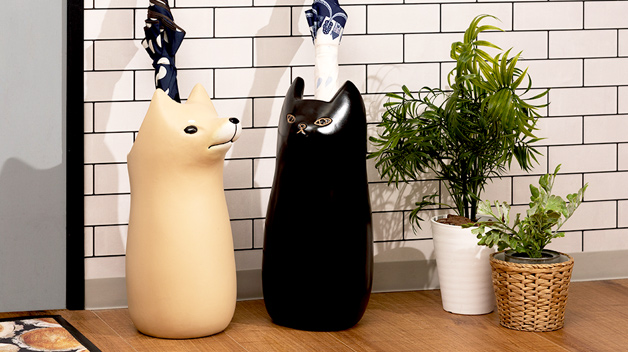 別シリーズの猫の傘立てと組み合わせてほっこりおしゃれな空間に。猫も犬もどっちも好きで選べないあなたに、おすすめの飾り方です。