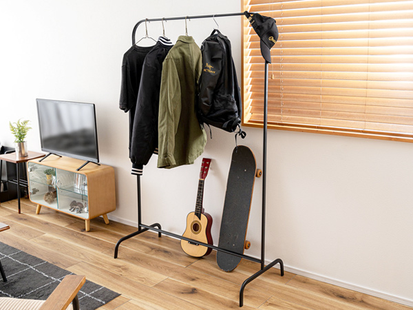 無骨でクールな印象を与えるこちらのハンガーラックは、収納を兼ねながら引き締まった黒がアクセントとなることで、インダストリアルスタイルのお部屋との相性バッチリのアイテムです。