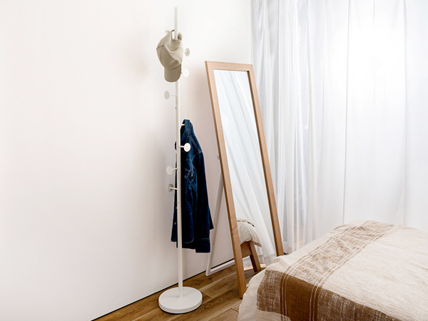 お洒落も全力で楽しみたい新生活には全身が確認できる鏡はマストですよね。枠は木目のものを選ぶと空間に馴染みます。コートラックはすぐ掛けてすぐ使えるのが魅力なので鏡の隣に配置するとさらに快適。