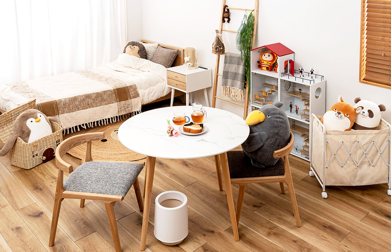木目の家具と温かみのあるファブリックに、ぬいぐるみや雑貨を添えて、 ほっこりナチュラルな空間が生まれます