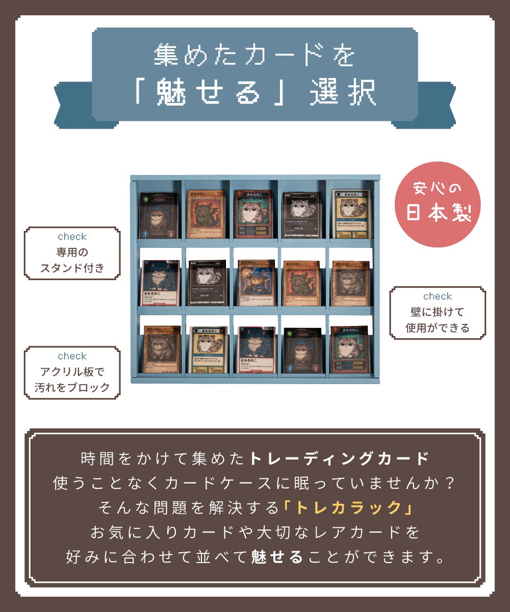 他の画像を見る UVカット!魅せるトレーディングカード収納 コレクションラック トレーディングカード ケース コレクション収納 ウォールラック 棚 送料無料 ¥ 16,500 税込 (0) お気に入りに登録する
